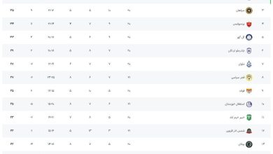 جدول لیگ برتر پس از پایان روز اول از هفته بیست و یکم