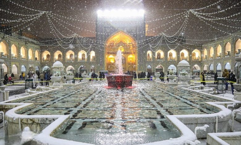تصاویری زیبا از برفروبی پشت بام حرم مطهر رضوی + فیلم
