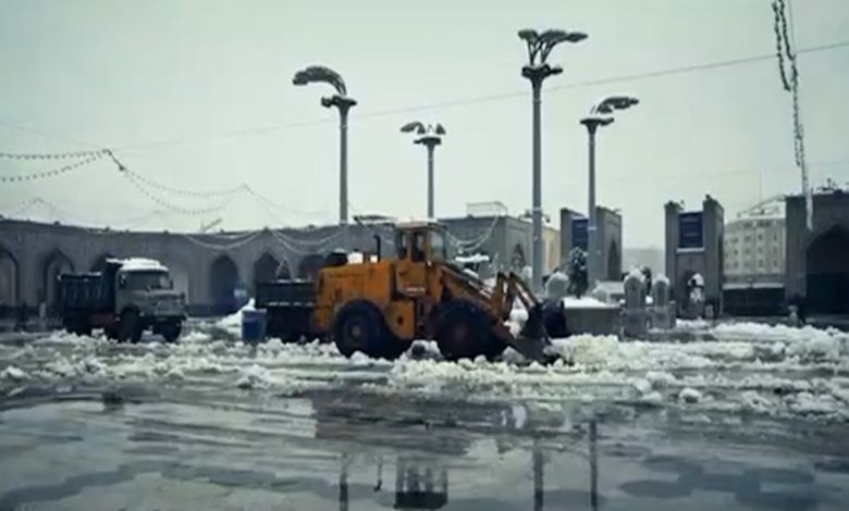 تصاویر جالب از برفروبی حرم امام رضا(ع) + فیلم