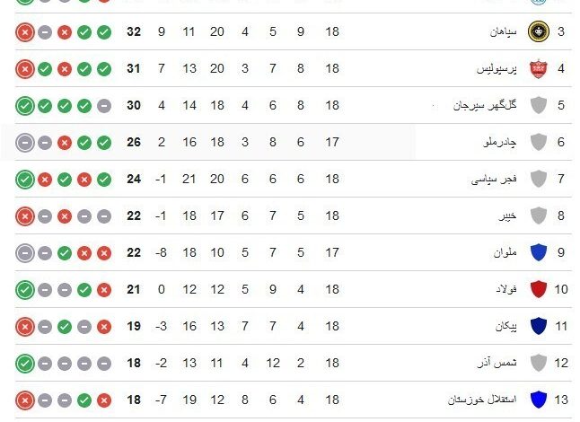 تا به اینجای هفته هجدهم رقابت‌های فوتبال لیگ برتر باشگاه‌های کشور نتایج زیر رقم خورده است: