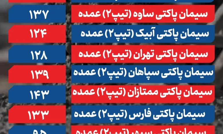 در جدول زیر انواع قیمت سیمان عمده (کارخانه) را مشاهده میکنید.