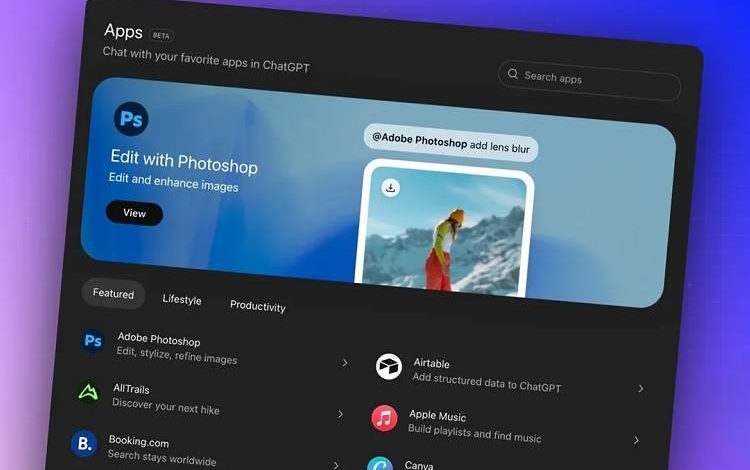 ایده اصلی Apps این است که ChatGPT بتواند در جریان مکالمه، اپلیکیشنهای مرتبط را پیشنهاد دهد یا کاربر با استفاده از دستور @ بهصورت مستقیم به آنها دسترسی پیدا کند. برای مثال، در صورت اتصال فتوشاپ، کاربر میتواند هنگام درخواست تولید یا ویرایش تصویر از ابزارهای این نرمافزار استفاده کند؛ حتی اگر حساب کاربری جداگانهای در فتوشاپ نداشته باشد.