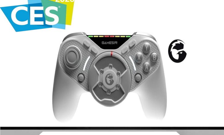 یک دسته بازی جدید در نمایشگاه CES 2026 معرفی شده که دارای یک فرمان با قابلیت بازخورد نیرو در وسط آن است.